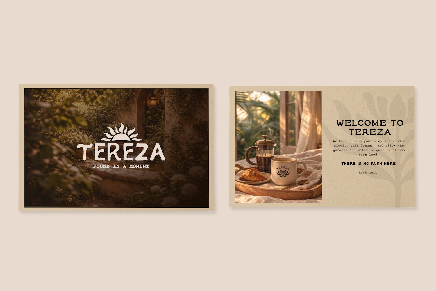 The positioning defines Tereza as a boutique, experience-driven retreat designed for connection, rest, and creative reset.
